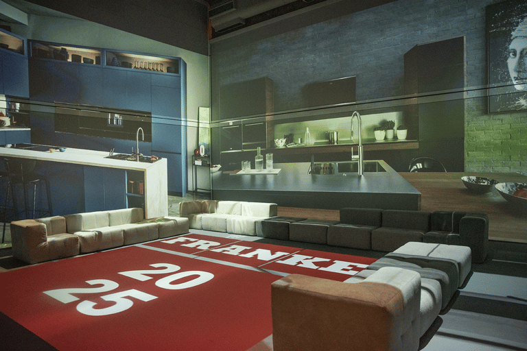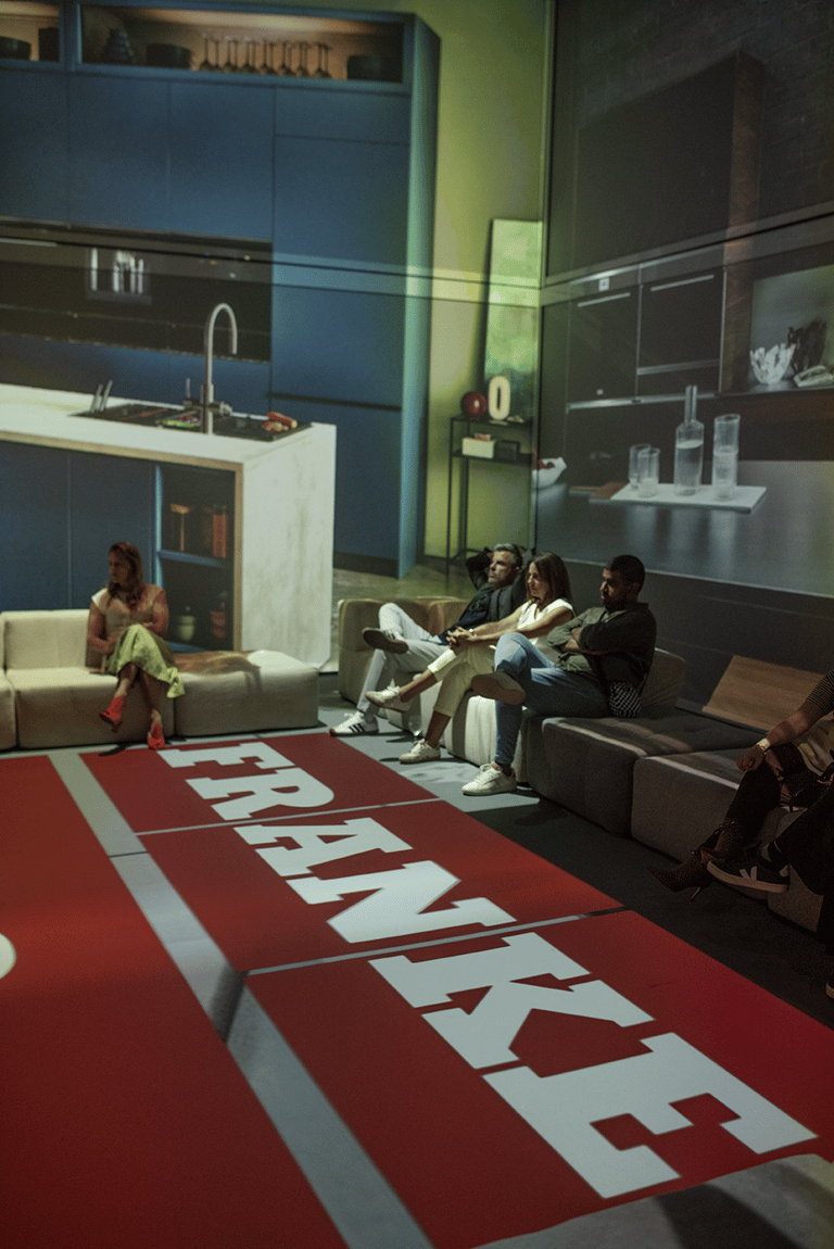 Para o lançamento de seus novos produtos, a Franke optou por uma experiência diferenciada: realizar a apresentação em uma sala imersiva da theSpace. Com projeções em escala real — incluindo paredes e chão — os convidados puderam ver cada detalhe dos produtos da marca inseridos em ambientes pensados, com luz, texturas e volumes próximos da realidade.