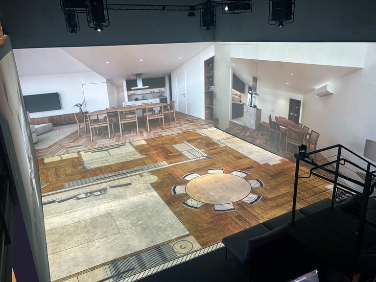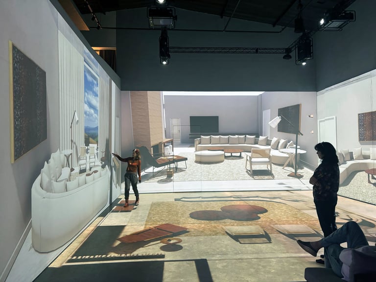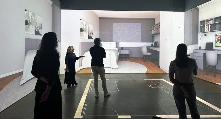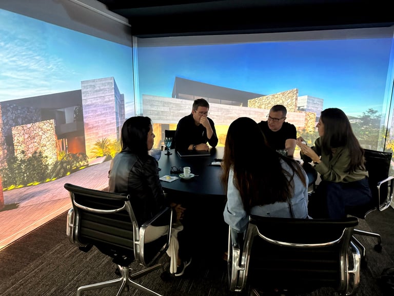 Na nossa sala de projeção, o cliente pode caminhar dentro do projeto antes de ele ser construído. Com projeções 360° em escala real, cada detalhe ganha vida: paredes, janelas, materiais, iluminação. E tudo isso sem o uso de óculos ou dispositivos externos. A experiência é fluida, natural e envolvente.